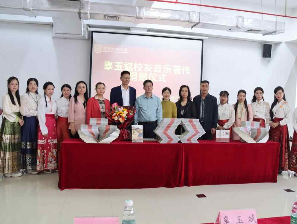 活动伊始,辜玉斌将其已出版发行的音乐著作、原创潮筝曲集《潮筝大乐》和《红楼潮韵》以及长达14米的珍藏乐谱捐赠给母校图书馆。图书馆馆长王忠政代表学校接收,并向其颁发捐赠证书。