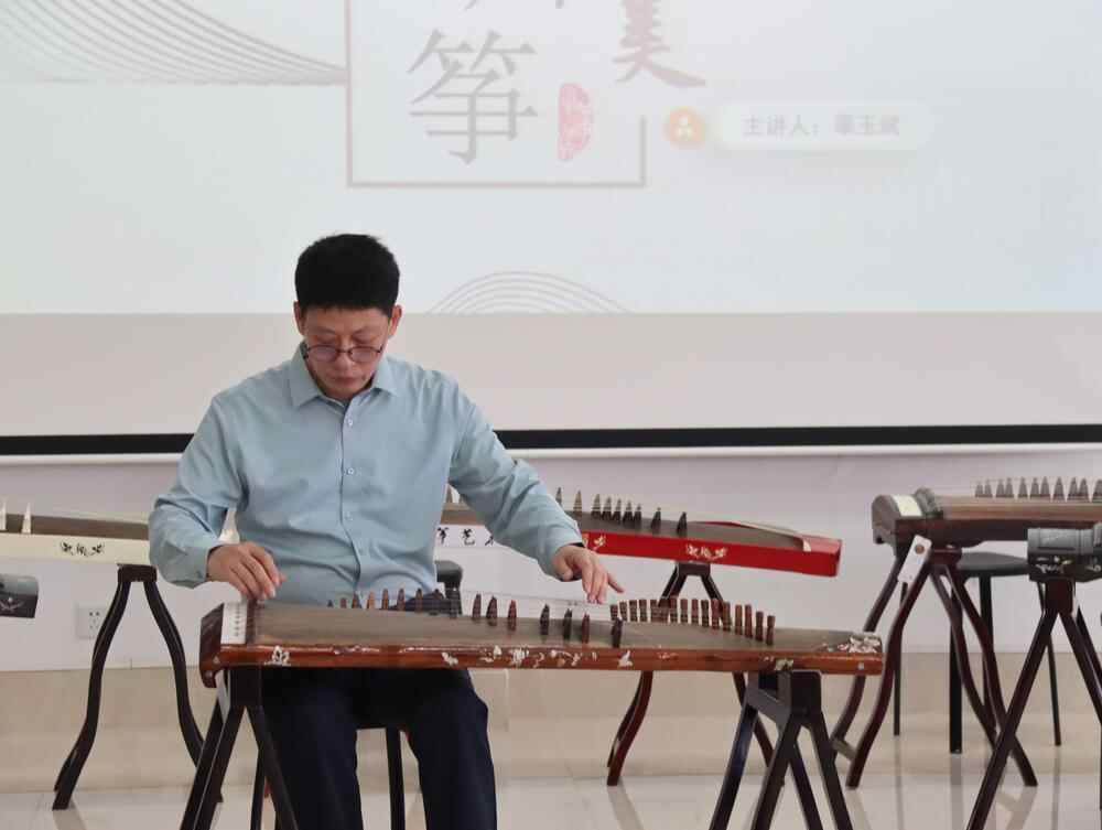 辜玉斌作了题为《潮州筝之美》的讲座,向大家介绍了潮州筝的由来及其地位,并从潮州筝的器之美、谱之美、律之美、儒之美、调之美入手,讲演结合,全方位地展示了潮州的筝之美。其间,辜玉斌还用百年潮州筝为大家演绎了潮州名曲《出水莲》和《柳春娘》。或悠扬清丽,或哀怨缠绵,其深情投入、娴熟高超的演奏把现场气氛带入了高潮。
